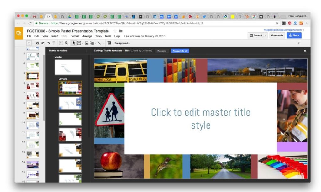Ada banyak tema Google Slides online. Kamu tidak perlu mengunduh apa pun. Dengan hanya satu klik tombol, template gratis kamu akan tersimpan di akun google drive kamu.