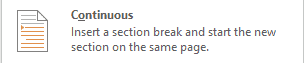 Continuous section breaks, untuk memulai section baru pada halaman yang sama. Salah satu alasan paling umum untuk menggunakan jenis bagian ini adalah jika Anda menggunakan kolom. Dengan menggunakan section break semacam ini, Anda dapat mengubah jumlah kolom tanpa memulai halaman baru. Jadi dalam satu halaman dapat lebih dari satu section. Pilih Layout> Breaks> Continuous.